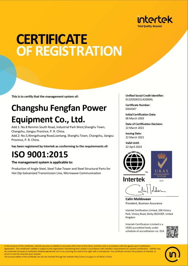 Fengfan International ha participado y construido una serie de proyectos de alta calidad, como el proyecto de cruce del río Yangtze de 500 kV en la ciudad de Jiangyin, con una altura de torres de 346,5 metros, el proyecto EPC de línea de transmisión de 500 kV del cruce del estrecho de Chacao en Chile, varios proyectos EPC de línea de transmisión en Bangladesh y el suministro de 190.000 toneladas de torres en Argelia.